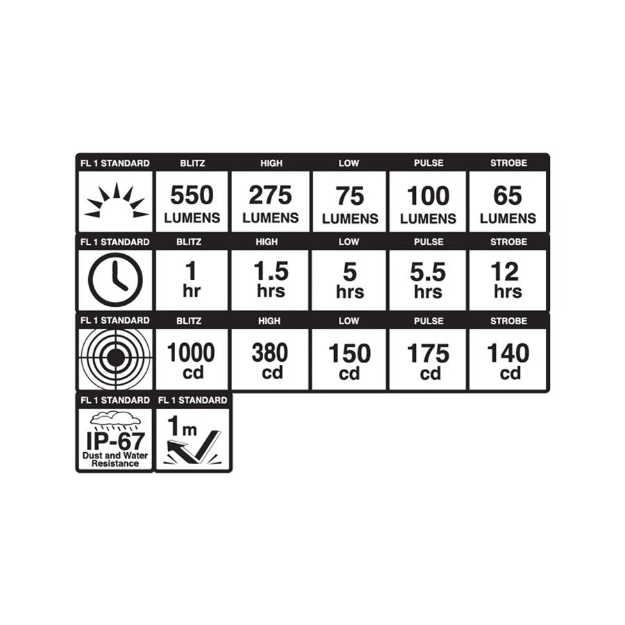 Powerful headlight with a brightness of 550 lumens and charging via USB port.