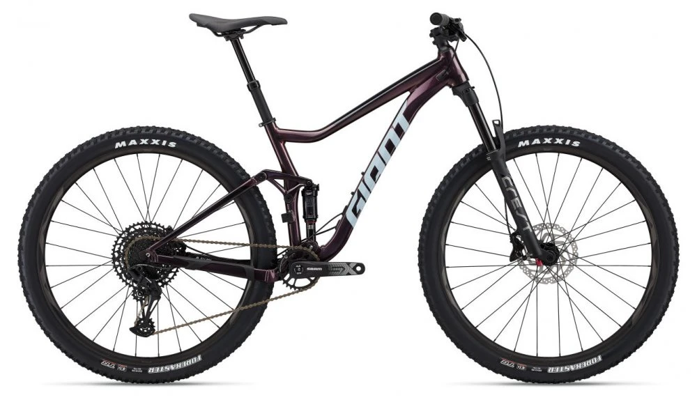 | Frame: Fork: Silencer: | ALUXX Aluminum FlexPoint suspension, stroke 120 mm Giant Crest 34 RCL, stroke 130 mm, Boost axle 15×110 mm, OverDrive post RockShox Monarch R, 184.15 / 44.45, custom tuned for Giant |