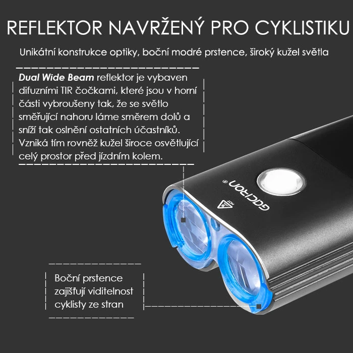 - Dual Wide Beam – sophisticated optics with an ideal light cone for cycling