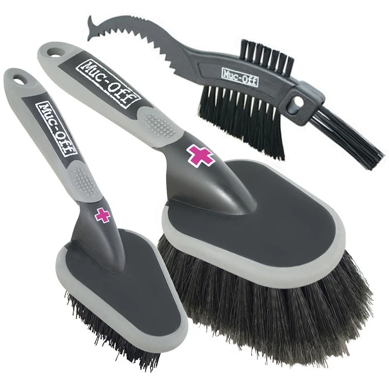 A set of brushes used to clean the frames and all the various parts of the bicycle and motorcycle, including those with delicate surface. It allows the removal of dirt from hard to reach places. All brushes are characterized by high mechanical resistance of the body and the hardness of the bristles.