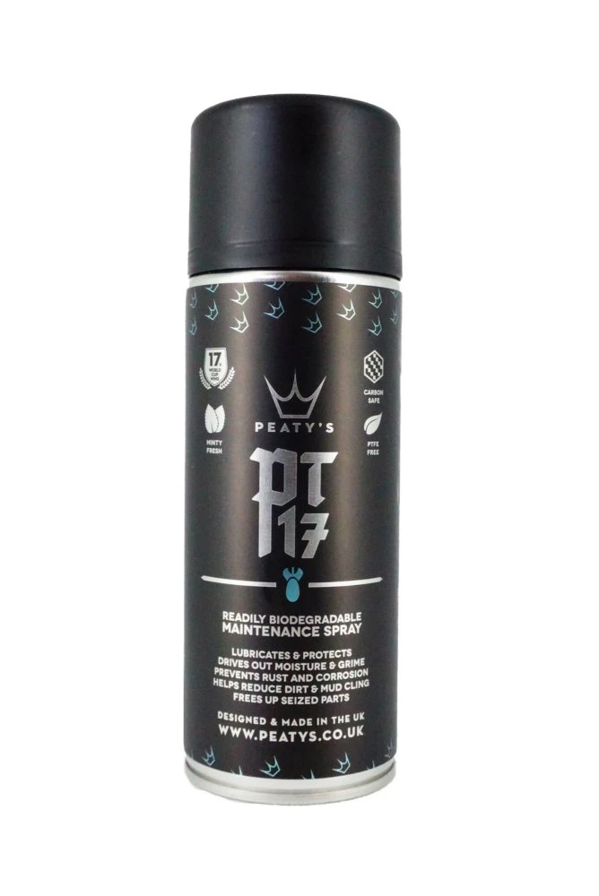 The universal, easily biodegradable PT17 spray is a practical tool for the overall maintenance of your bicycle. Its key features include the ability to expel moisture from freshly washed components. At the same time, it acts as a means of cleaning and loosening rusted or oxidized parts.