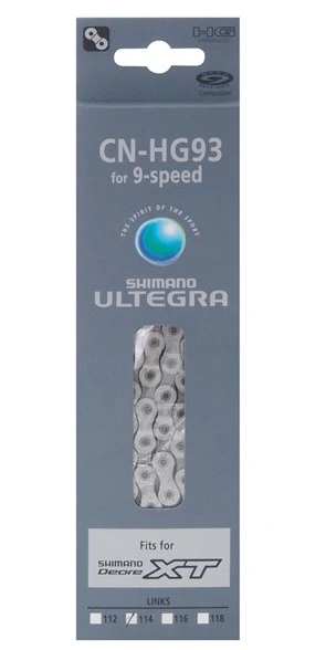 Mountain or road bike chain from the Shimano Deore XT M770 / Ultegra 6500 / Alfine S700 set, suitable for driving in a 9-speed cassette configuration.