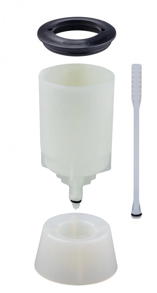 The original innovated venting container for MTB Shimano disc brakes. Use only with mineral oil.