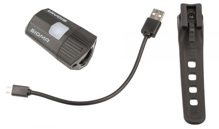 Package contents: front light, rear light, handlebar and helmet holder for front light, charging cable