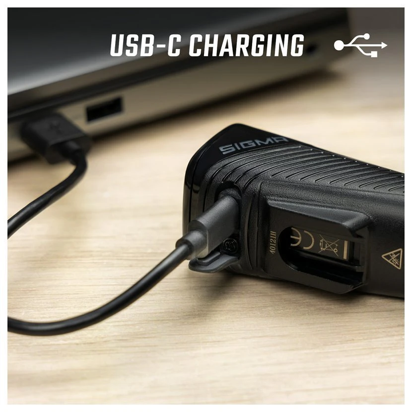 Front LED light with a luminous flux of 150 lumens and charging via USB-C.