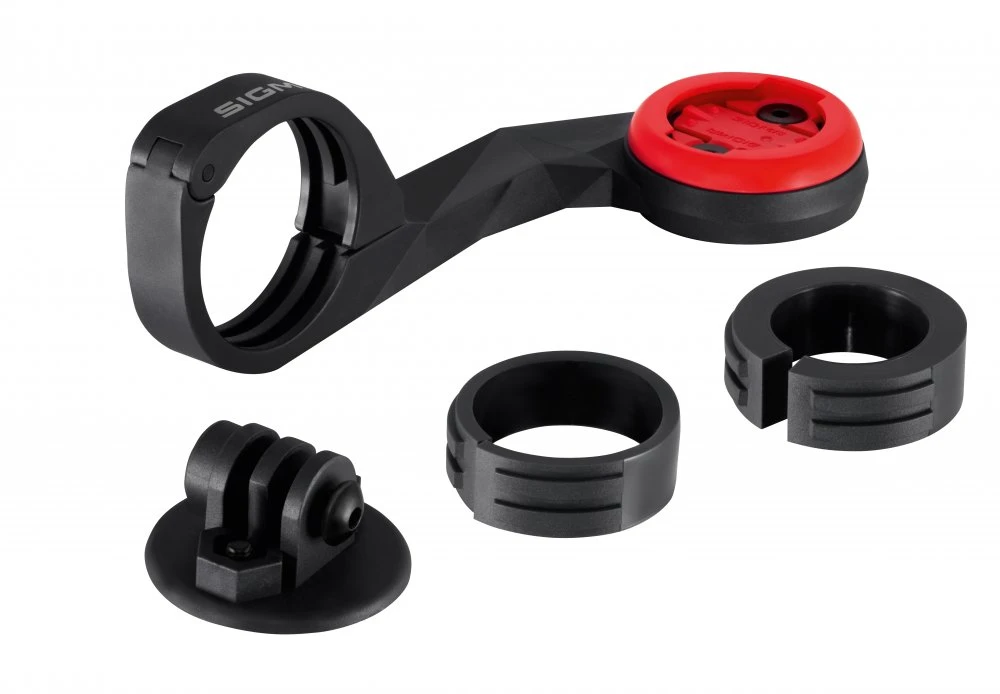 An advanced aerodynamic holder for Sigma GPS wireless computers to position them in front of the handlebar. Can be clamped to all handlebar diameters up to 35mm diameter. Included is an adapter that can also be used to mount an action camera or Sigma Buster light.