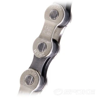 Mountain or road bike chain from the Sram X7 set suitable for driving in a configuration with a 9-speed cassette.