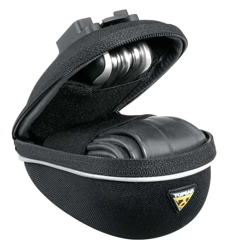 Smaller shape bag suitable for telescopic seatposts, which offers easy access to everything you need for a bike trip.