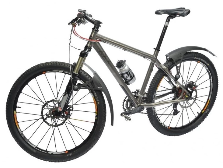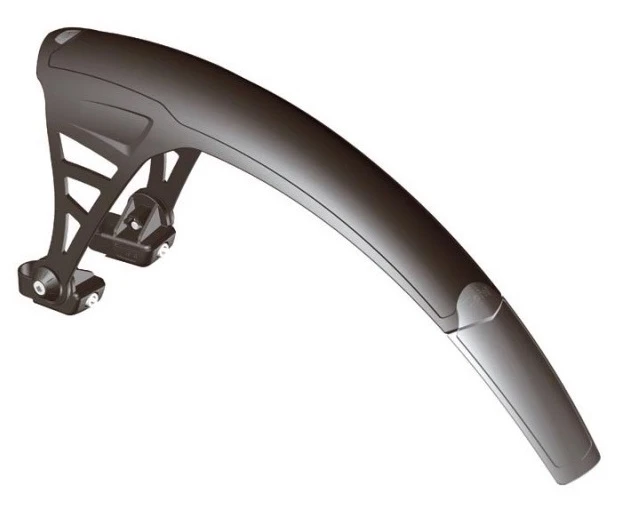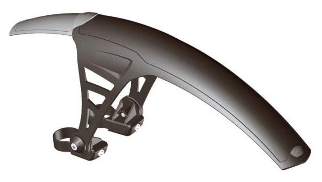 Fender designed for mounting on front fork or rear frame construction.